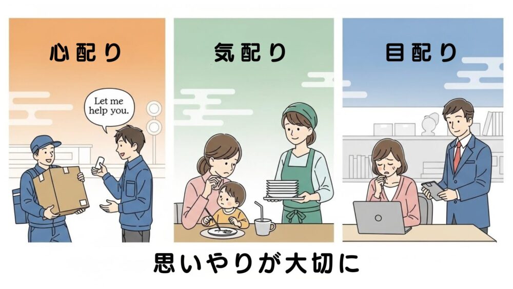 よい仕事をするには、また人付き合いをするには「目配り」、「気配り」、「心配り」